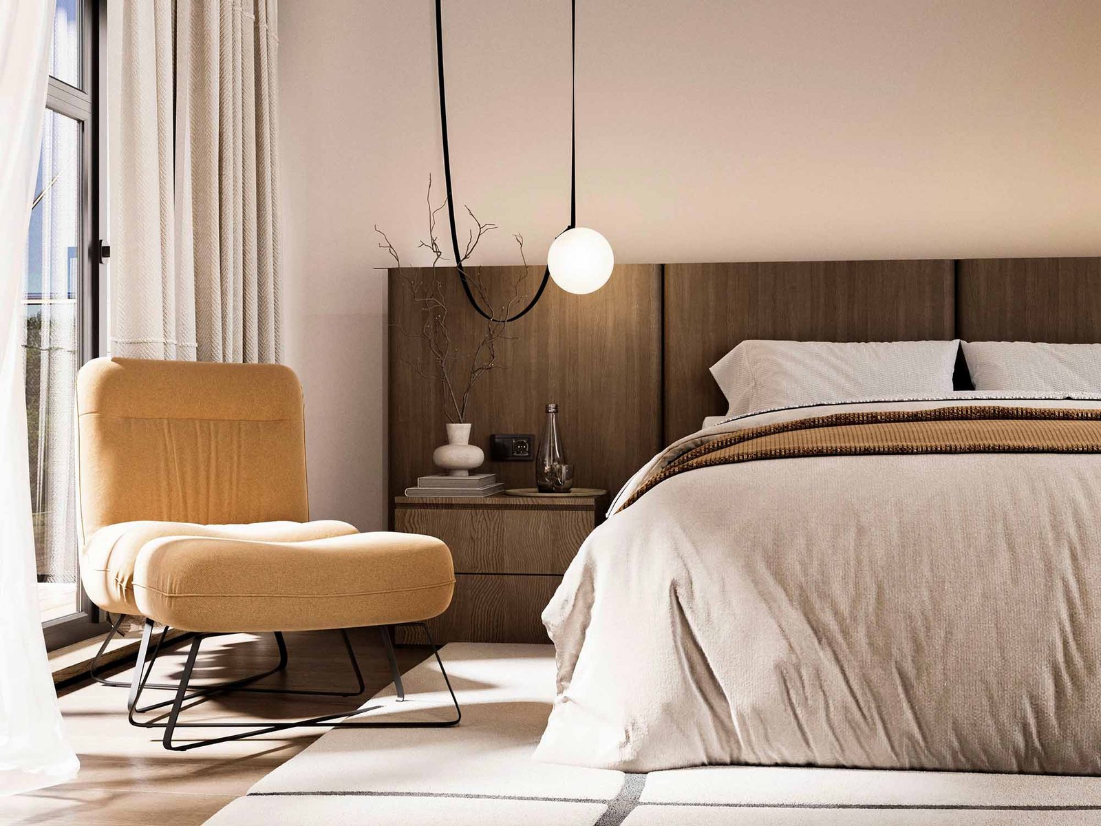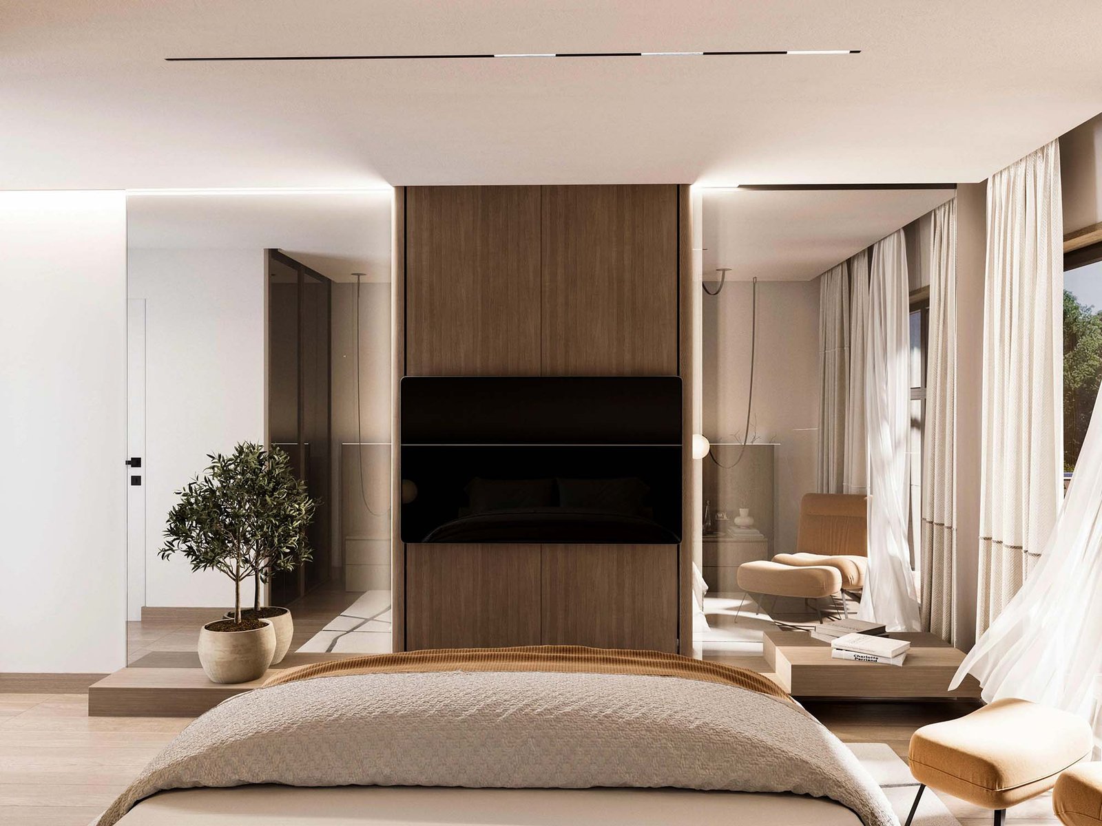 The interior concept focuses on soft minimalism — a design language that values simplicity, light, and texture.