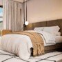 Neutral tones are paired with soft wood finishes and subtle metallic accents to create a sophisticated yet welcoming environment.